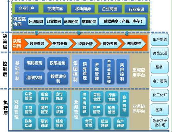 集团企业物资管理的特点在于一方面使企业内部物流速度加快、准确率提高、库存减少、成本降低,另一方面在供应链管理模式下,强调跨组织物流资源整合。集团企业在建设现代企业物资信息化管理体系的时候,需要同时关注整合内部资源的物资管控核心业务与整合外部资源的协同业务的匹配,使之既涵盖物资计划管理、采购管理、仓储管理、销售管理等系统的同时,既要与财务管理子系统、生产管理子系统无缝对接,确保物资供应符合量产产品生产计划的实际需要,不仅能按计划及时供应,根据生产工序确定物资投产时间节点,根据物资采购、外协、自制等来源提前期,确保关键物资的及时供应;根据生产计划项目、批次控制物资齐套发料,杜绝同类物资不同参数的错误领用、停工待料等问题,同时满足库存量控制。同时,满足零星物资采购计划的编制与提交。,又将管理范围延伸到上游供应商和下游客户,建立起良好的供应商关系管理和客户关系管理,在应用上使其不但满足高度集成、彼此协作的应用模式的需要。